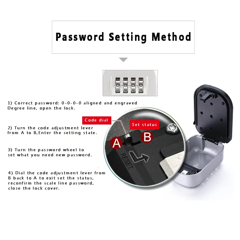 1) Correct password: 0-0-0-0 aligned and engravedDegree line, open the lock.