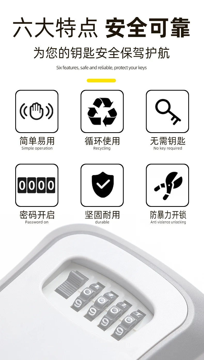 Wall Mount Key Storage Secret Box Organizer 4 Digit Combination Password Security Code Lock No Key Home Key Safe Box