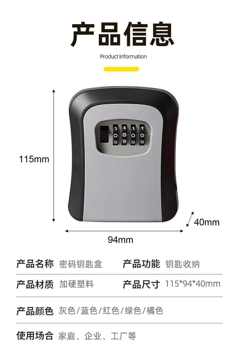 Wall Mount Key Storage Secret Box Organizer 4 Digit Combination Password Security Code Lock No Key Home Key Safe Box