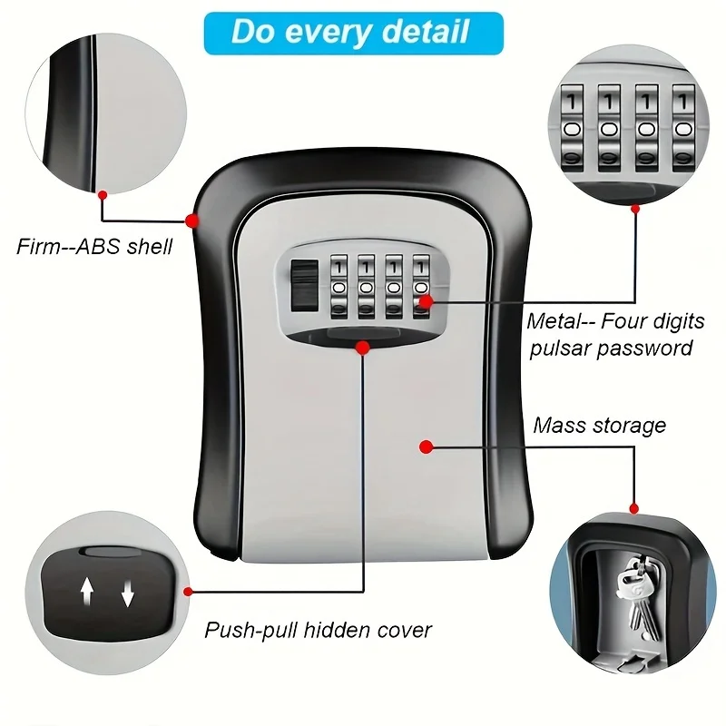 3. Large safe storage: Size: 114mm long, 94mm wide, 40mm thick, can hold up to 5 keys