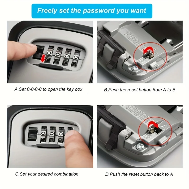 Wall Mount Key Storage Secret Box Organizer 4 Digit Combination Password Security Code Lock No Key Home Key Safe Box