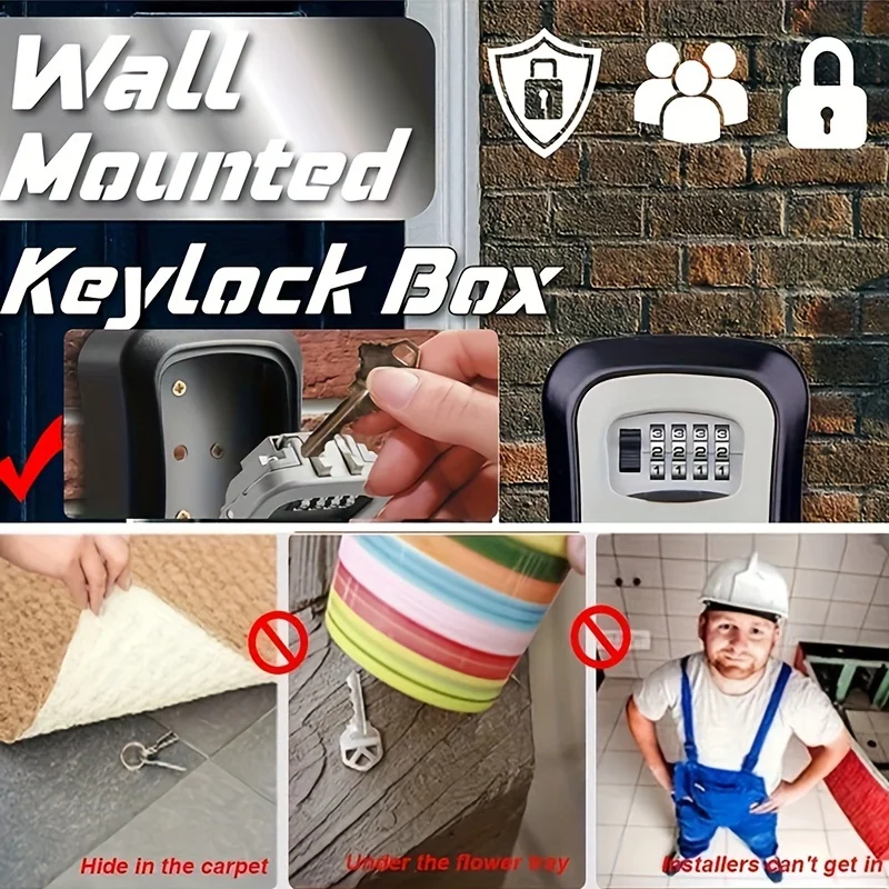 1. Sturdy material: let our lock box protect your keys from damage from Hammers, saw, drill bits, etc.