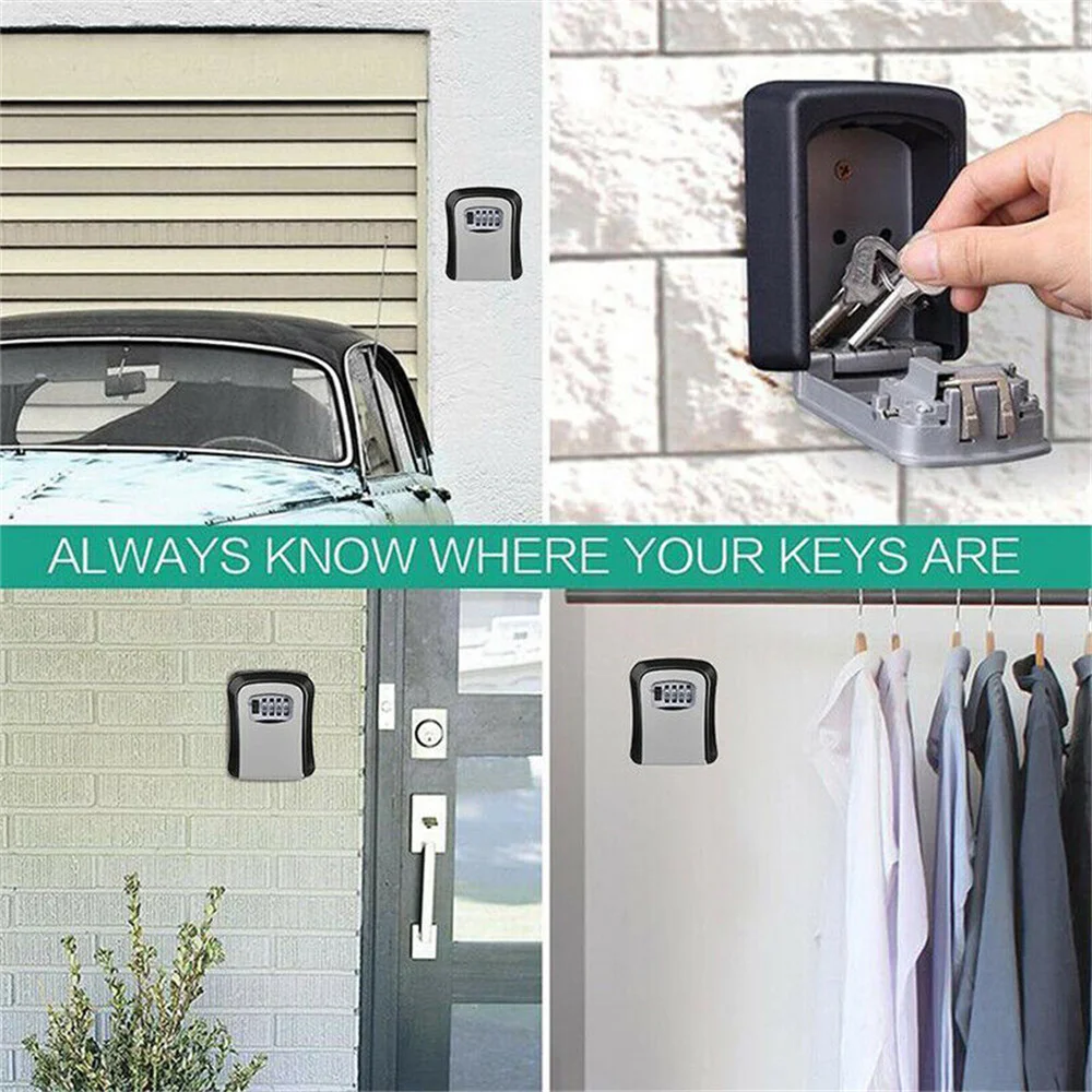 4 Digit Password Key Box With Digital Lock Hanging Type Metal Password Key Box High Security Wall Mounted Home Key Safe Box