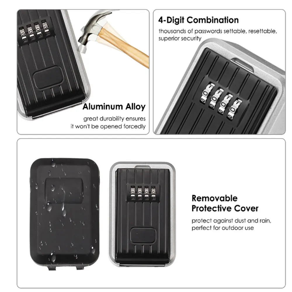 Wall-mounted key safe mini storage key box key storage lock box with 4 digit combination waterproof cover for outdoor use