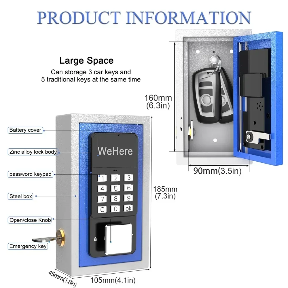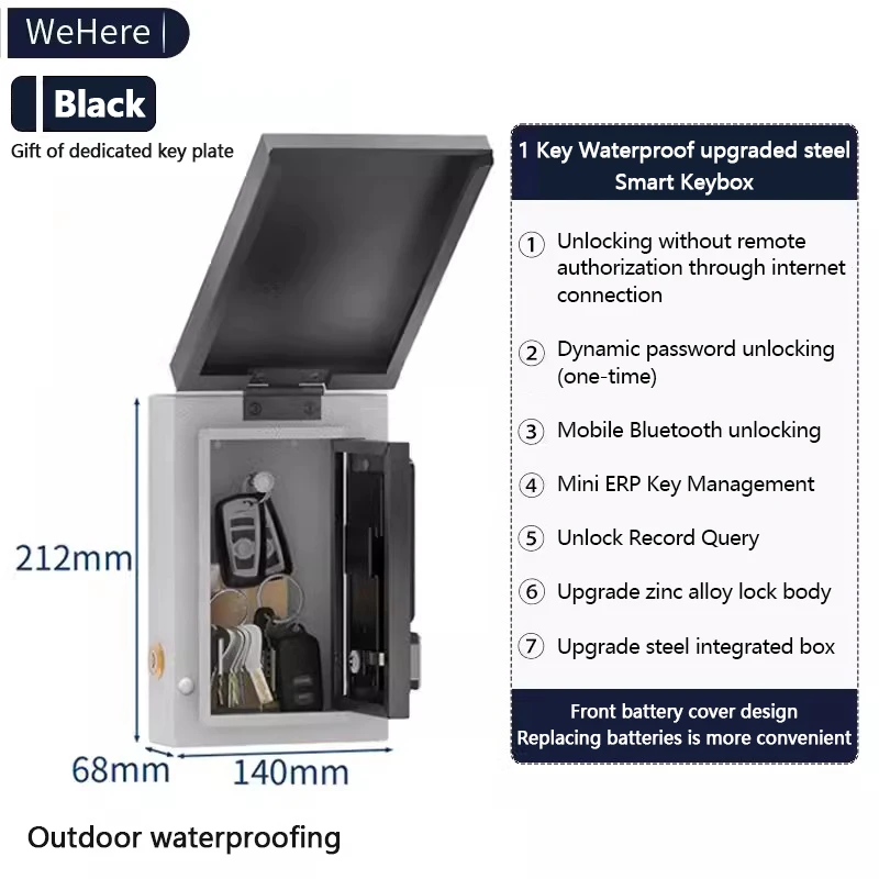 Waterproof Key Safe Box Wall Mounted Bracket Is Suitable for House Keys OTP/APP/fixed Code Unlocking Outdoor Security Management
