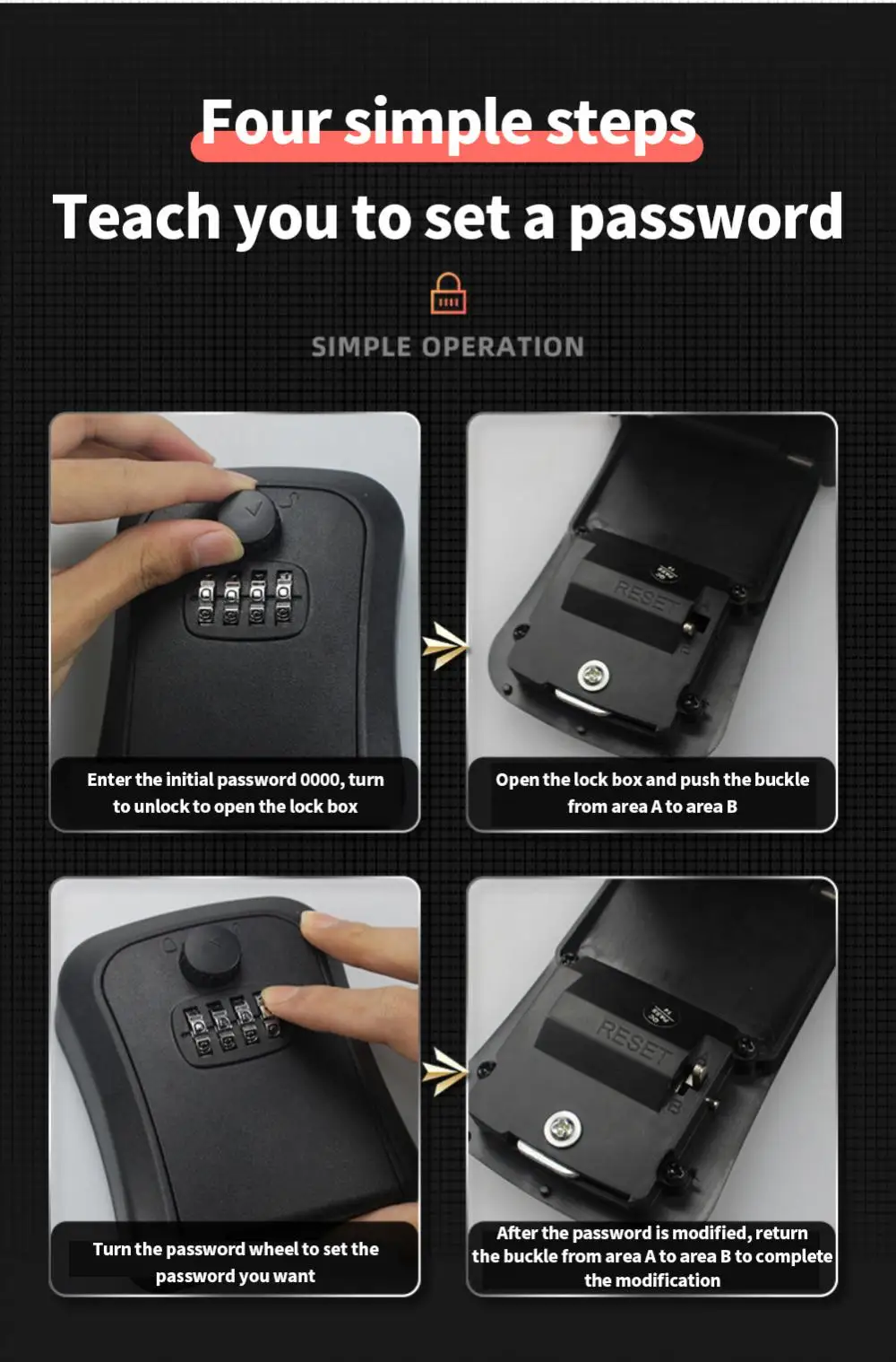 5. Wide application: The key box can be used in many areas. It is suitable for outdoor use. It can be fixed to a wall for emergency entry, vacation home, etc