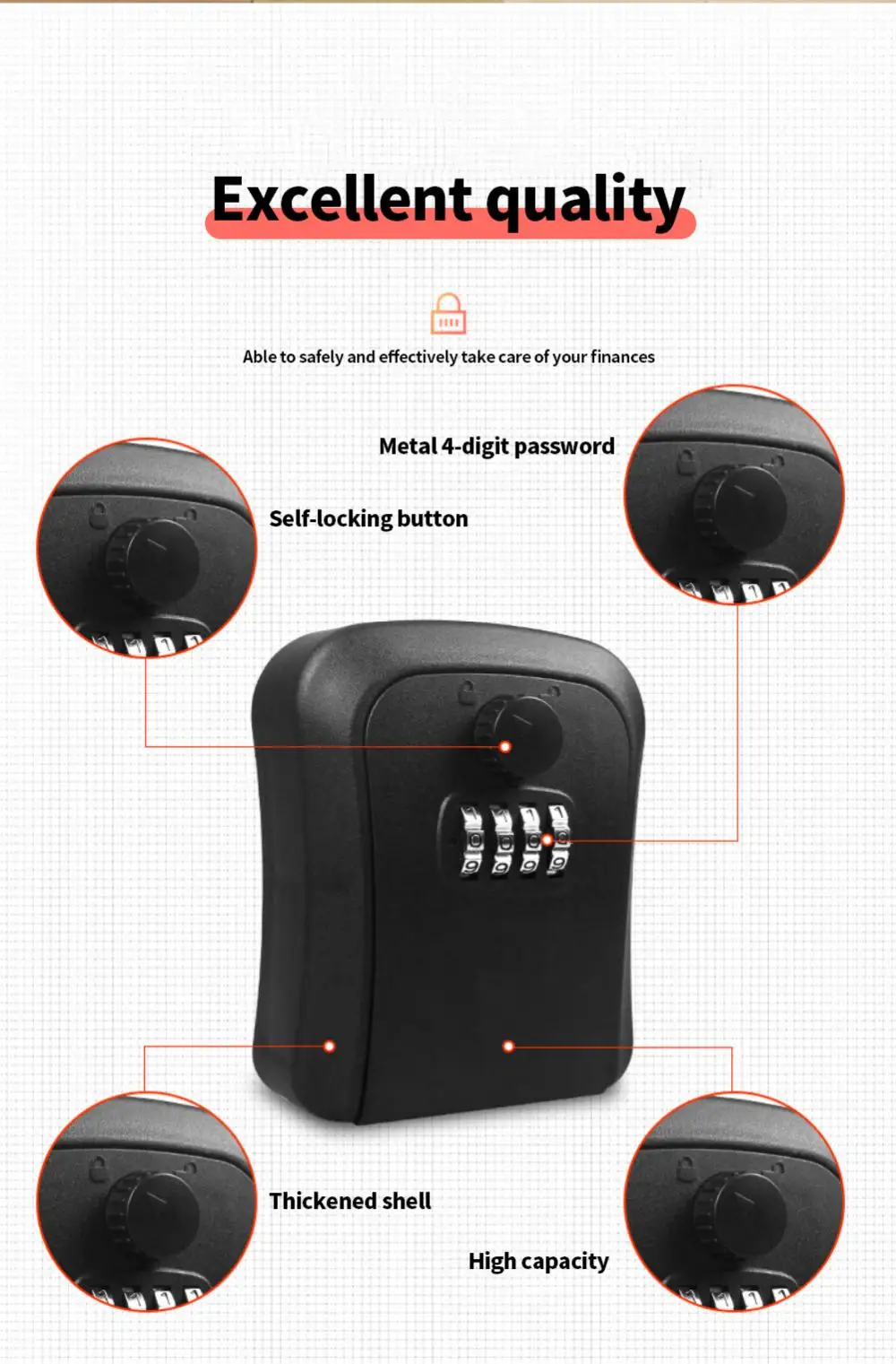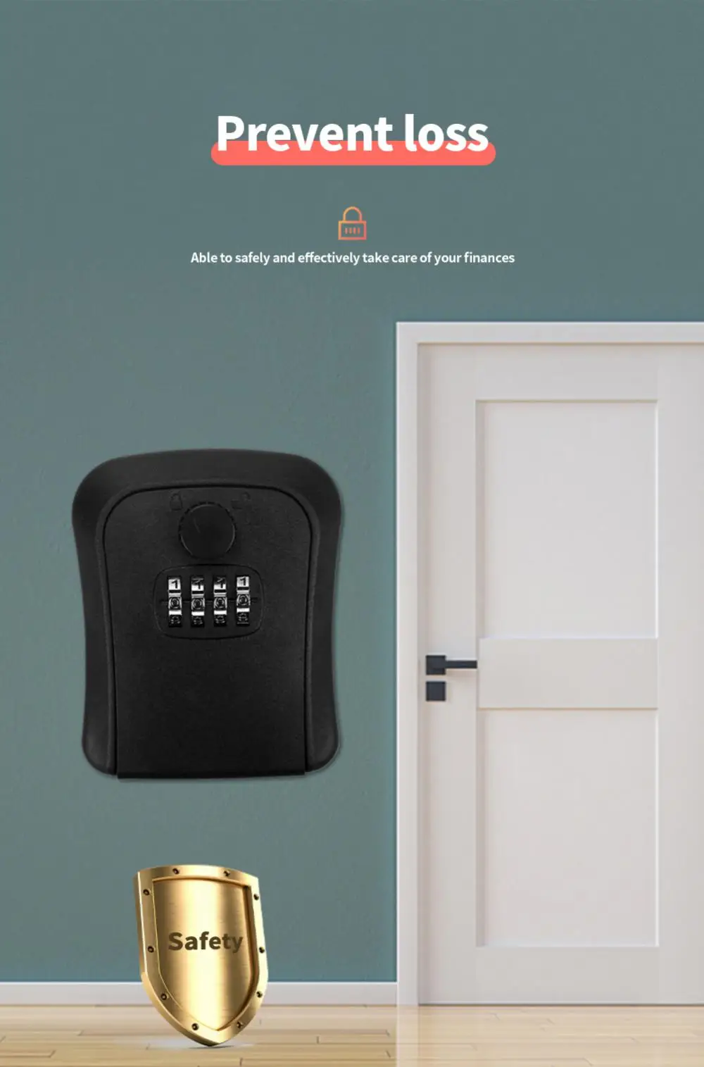Weatherproof Wall-mounted Key Safe Password Key Box Key Lock Box No4 Combination Key Storage Lock Box Indoor and Outdoor