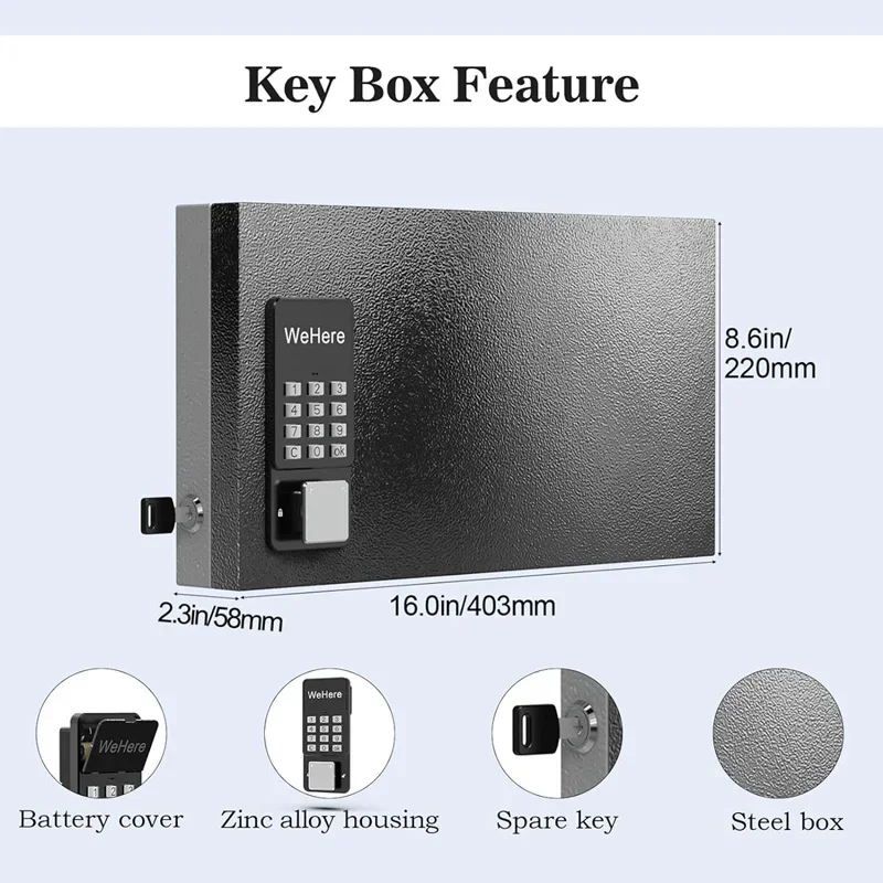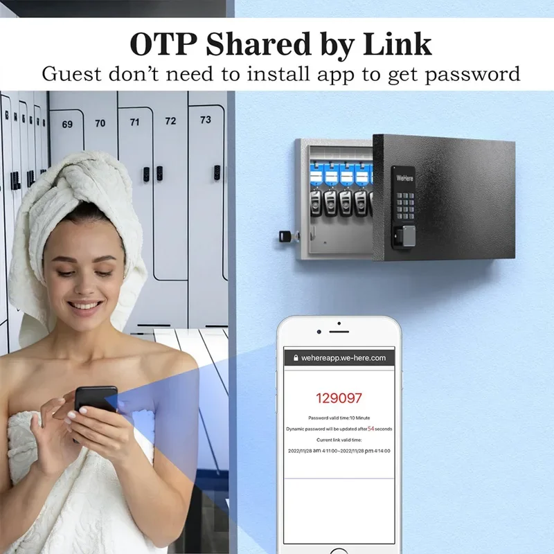 WeHere 24 Key Lock Box, Intelligent Wall Mounted Key Storage Cabinet,OTP/APP Bluetooth/fixed Code Unlocking Key Management Safe