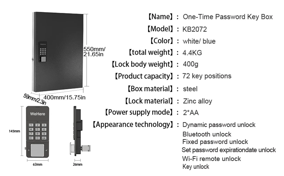 WeHere 72 Key Lock Box, Intelligent Wall Mounted Key Storage Cabinet,OTP/APP Bluetooth/fixed Code Unlocking Key Management Safe