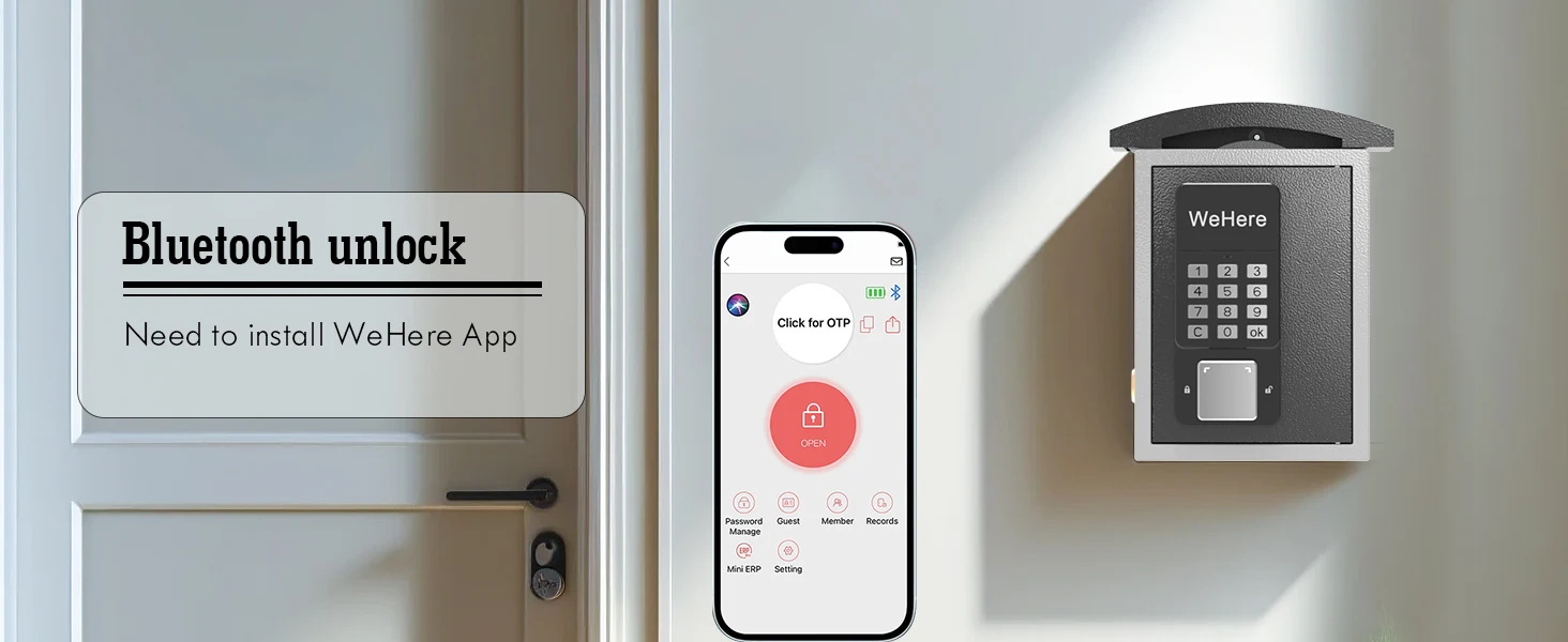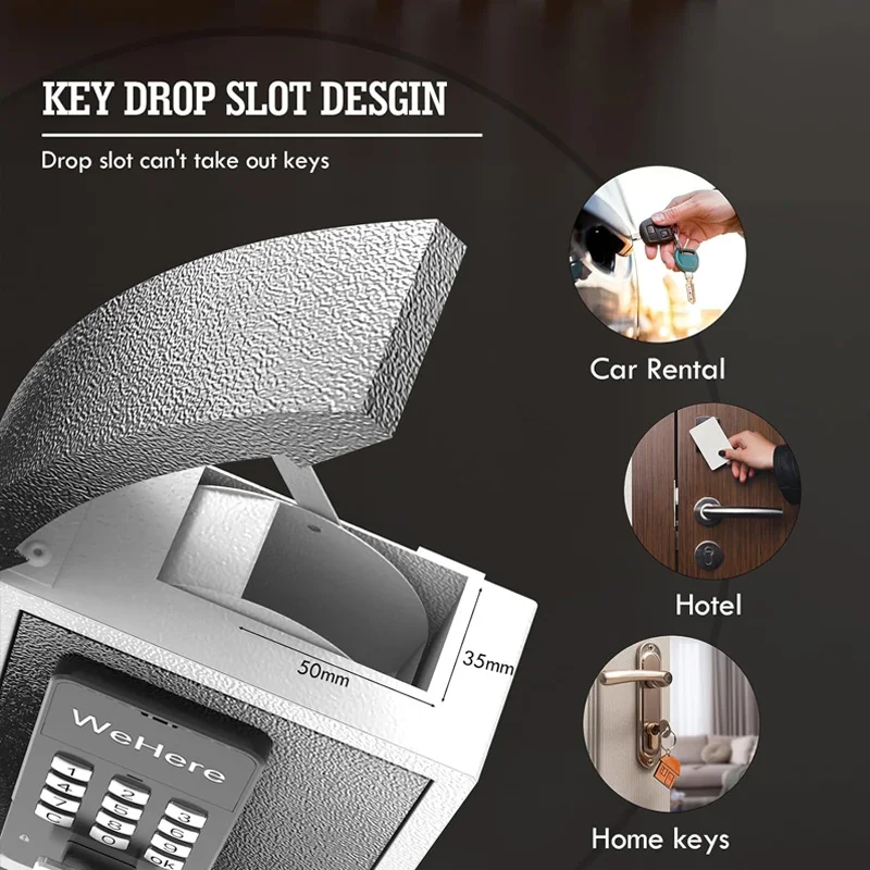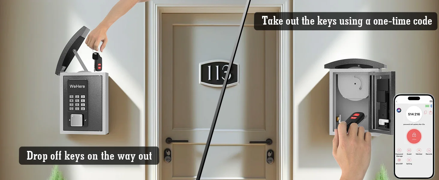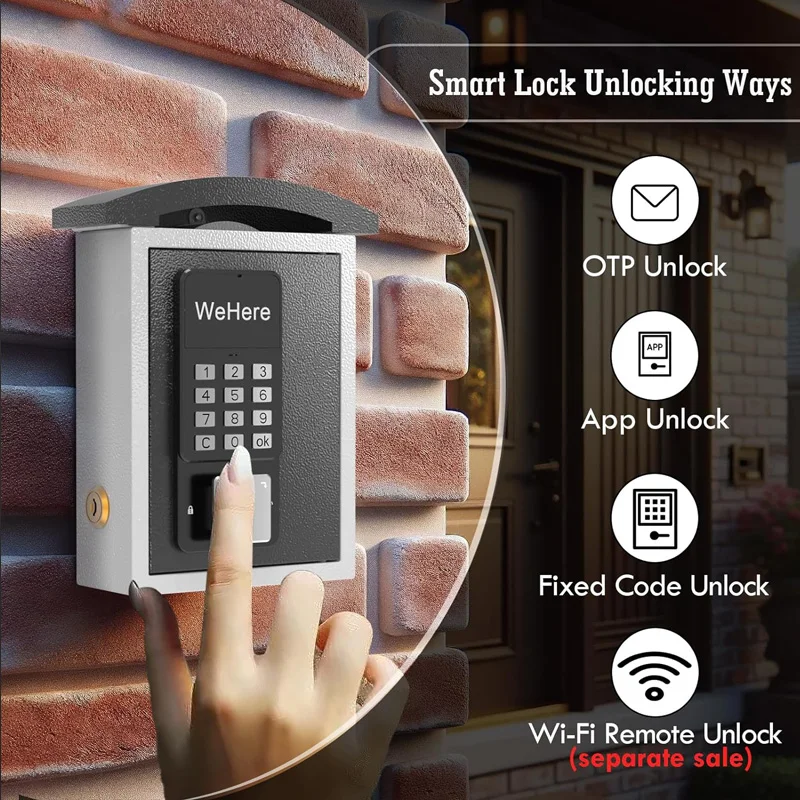 WeHere Key Safe Box Wall Mounted Suitable for House Keys Secure Storage OTP/APP/fixed Code Unlocking Outdoor Security Management
