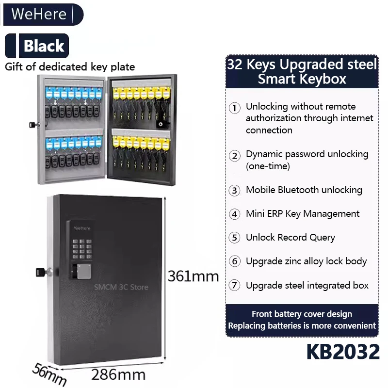 2.Pre-drilled holes allow the lock box to be mounted directly to a wall 3.Free colored Key TagsAPP Feature 1.It use token technology which will be updated every 60s, so each password are different#Time period Password or Static password or Blutooth unlock 2.Grant access to your friend / family to use 3.Unlock Record, see who use the key Material : Stainless steel