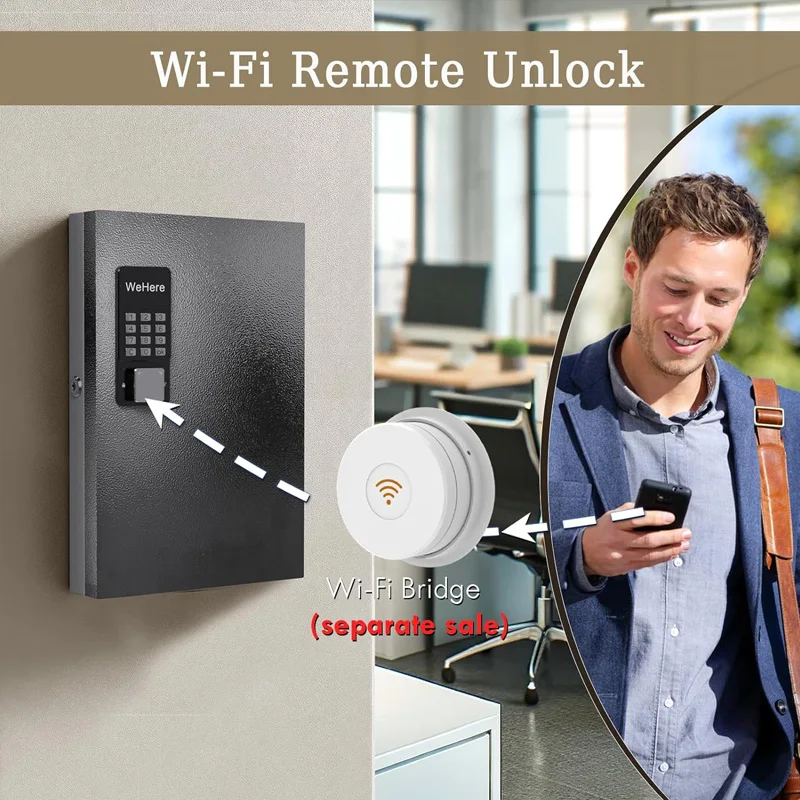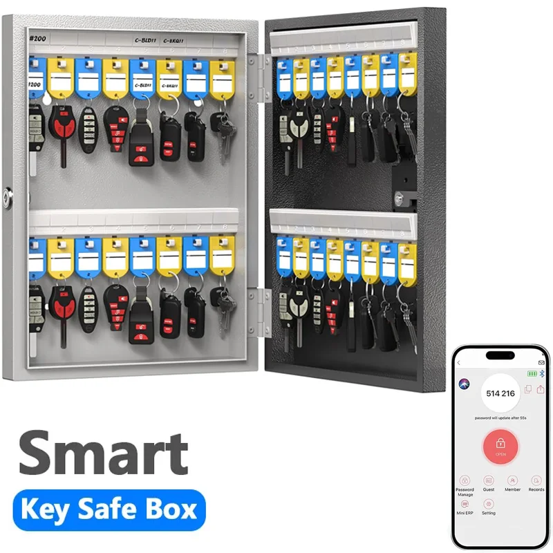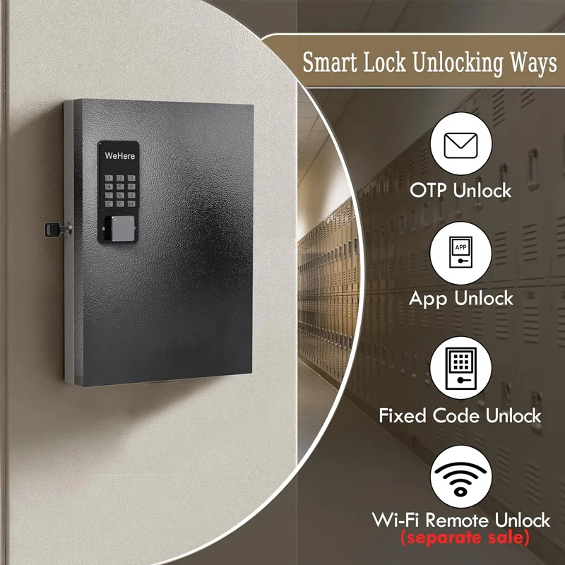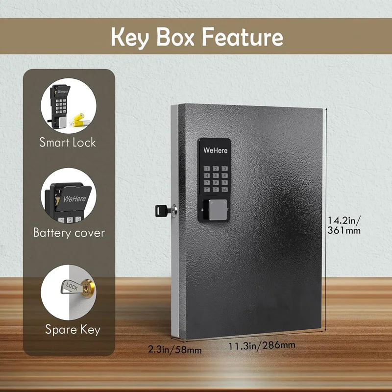 WeHere Key Safe Box (32 Keys),with APP Bluetooth/fixed/dynamic Password/OTP Shared Unlocking Security Lockbox for Key Management