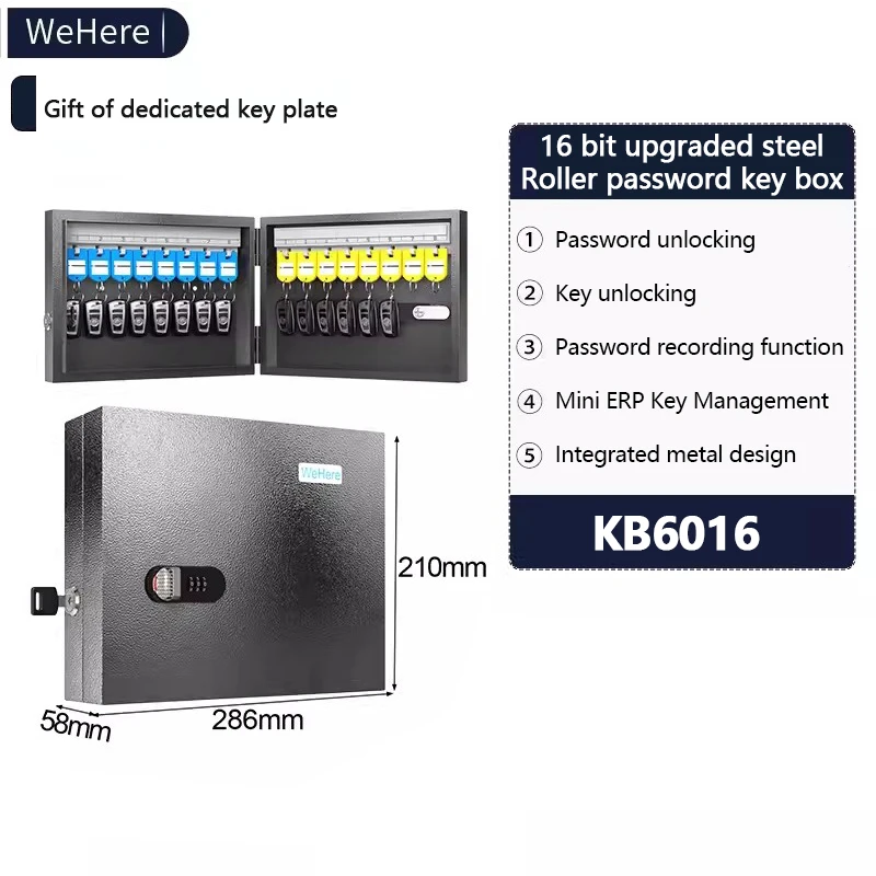 WeHere Key Safe Box Wall Mounted (16 Keys), Roller Mechanical Password Lock,key Cabinet with Combination Lock and 16 Key Labels