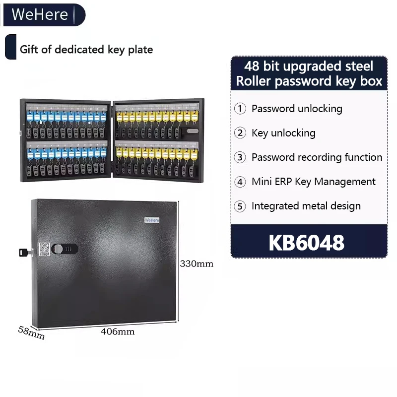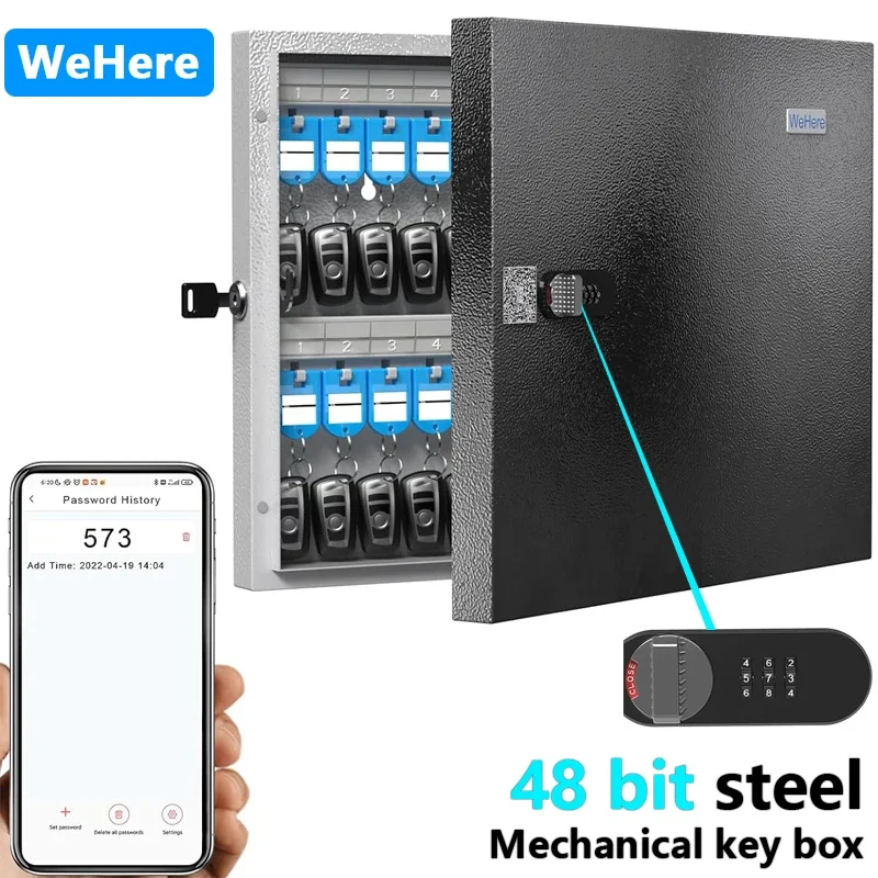 WeHere Key Safe Box Wall Mounted (48 Keys), Roller Mechanical Password Lock,key Cabinet with Combination Lock and 48 Key Labels