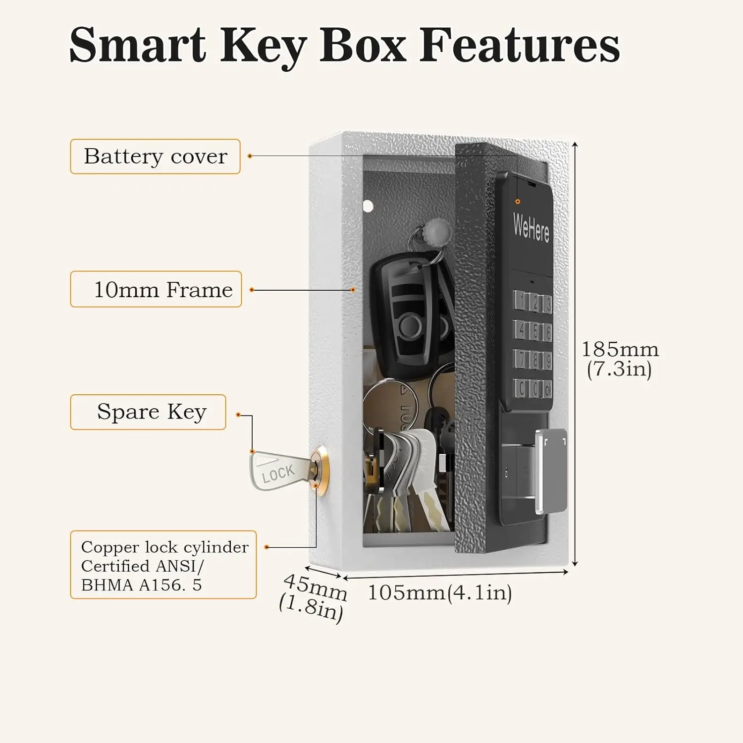 WeHere Key Safe Box Wall Mounted Bracket Is Suitable for House Keys OTP/APP/fixed Code Unlocking Outdoor Security Management