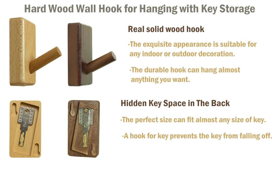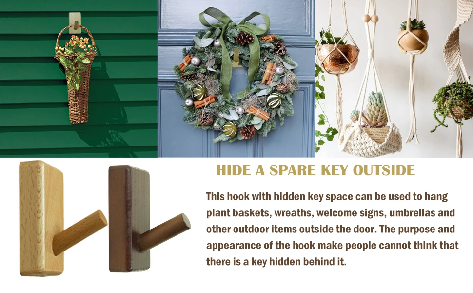 - This beautifully handcrafted heavy duty wall hook is made with 100% natural solid beech wood suits any indoor and outdoor decor.Cleverly hide the spare key on the back.