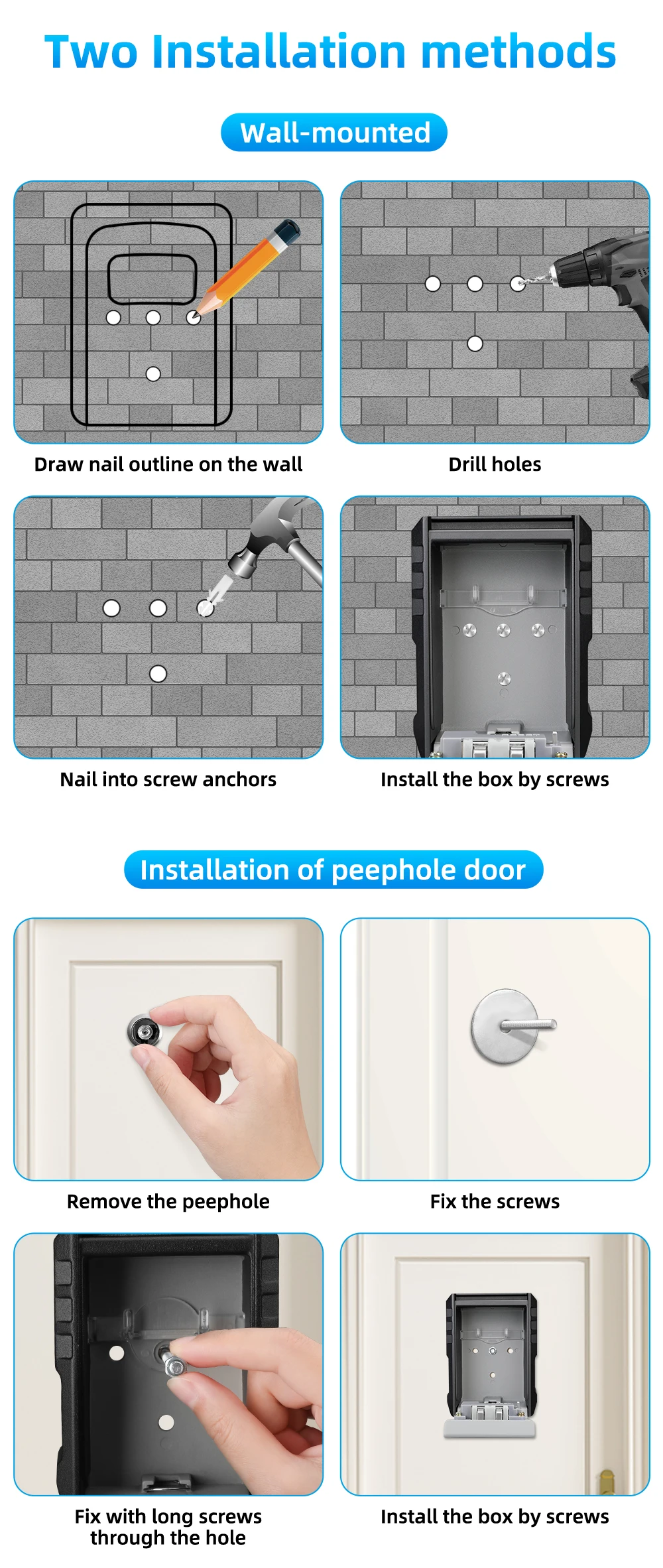 Wsdcam Wall Mount Safe Box 4 Digit Password Lock Metal Key Box Waterproof Anti Theft Safe Deposit Box Security-protection