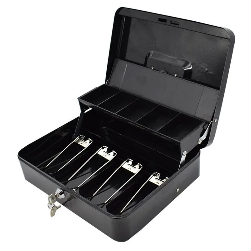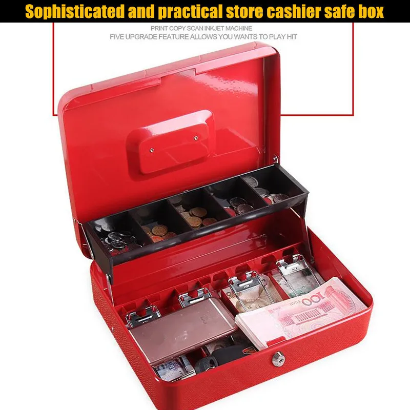 XL:30x24cm Metal Mini Safe Box Key Lock Store Money Coin Cashier 2-layer Fold Password Cash Register Jewellery Bank Card Storage